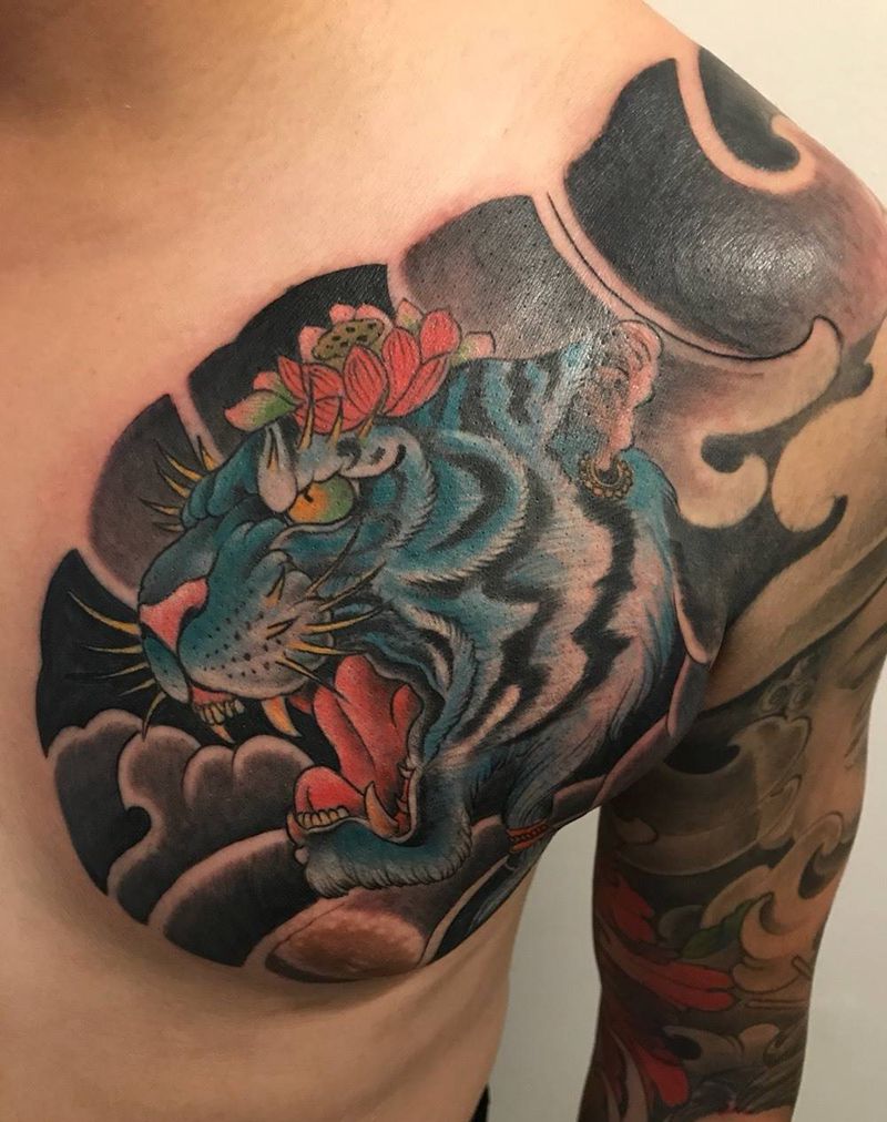 • 女性大花胸纹身_43张霸气漂亮的女性大花胸纹身图案作品