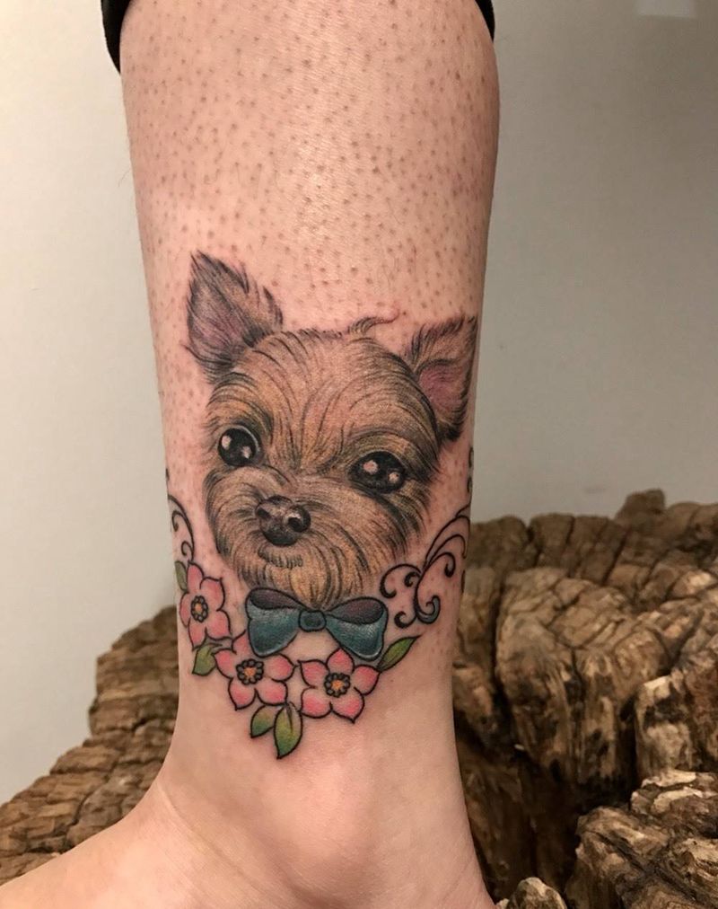 当前位置: 首页 >山西省阳泉市纹身店-问鼎刺客纹身纹身图案>狗纹身图片_成品腿部写实动物纹身图案