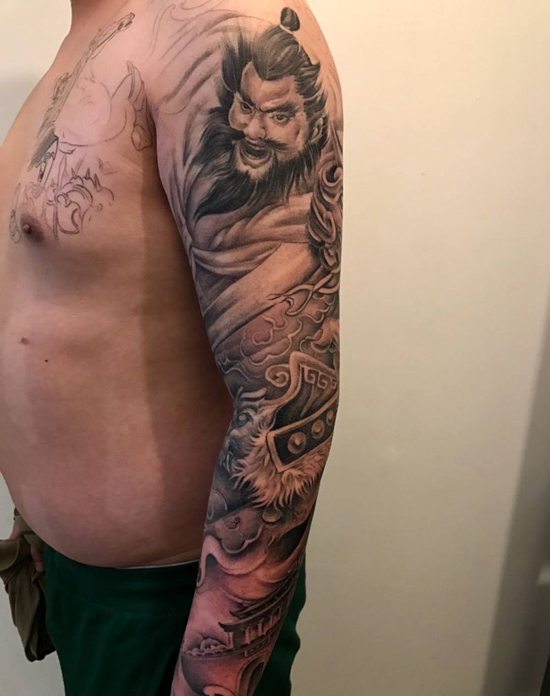 当前位置: 首页 >山西省阳泉市纹身店-问鼎刺客纹身纹身图案>张飞纹身图片_成品手臂欧美人物原创纹身图案
