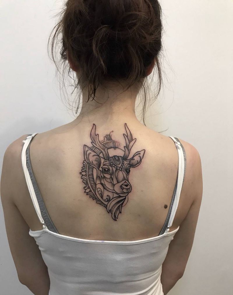 当前位置: 首页 >山西省阳泉市纹身店-问鼎刺客纹身纹身图案>鹿纹身图片_成品背部动物纹身图案