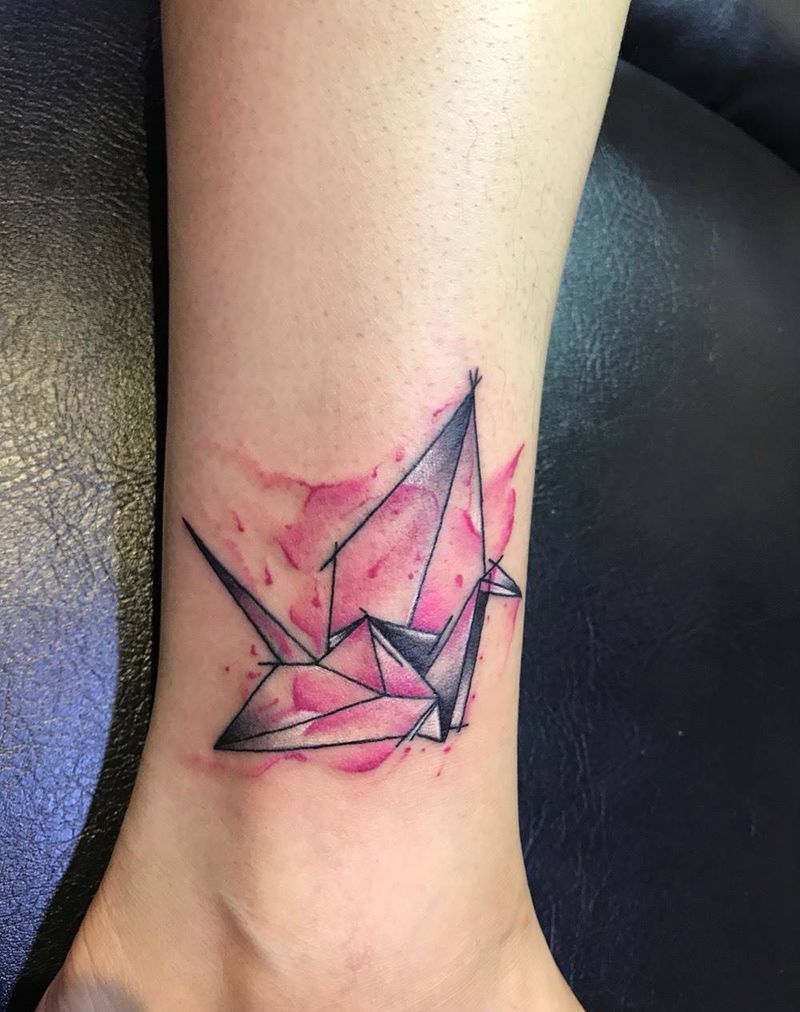 千纸鹤纹身图片_成品脚部国画几何纹身图案