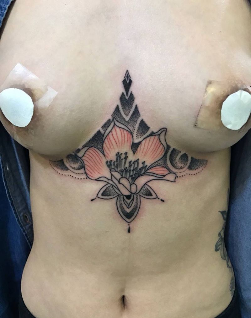 • 时尚性感的腹部莲花纹身图案