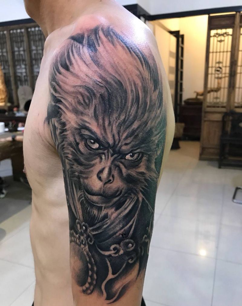 当前位置: 首页 >山西省阳泉市纹身店-问鼎刺客纹身纹身图案>猴纹身图片_成品肖像鬼神纹身图案