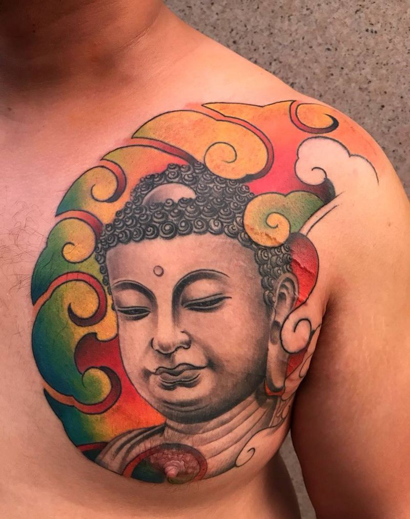 佛纹身图片_成品胸部传统人物原创纹身图案