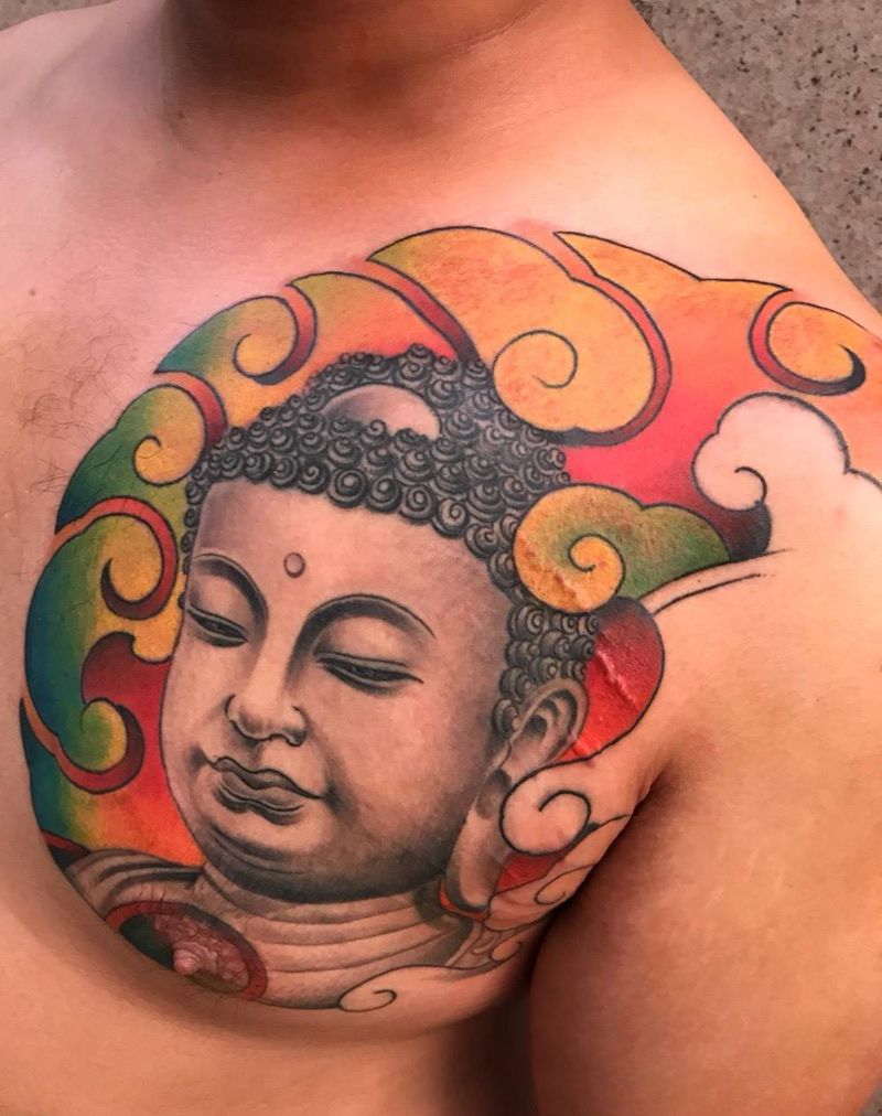 佛纹身图片_成品胸部传统人物原创纹身图案