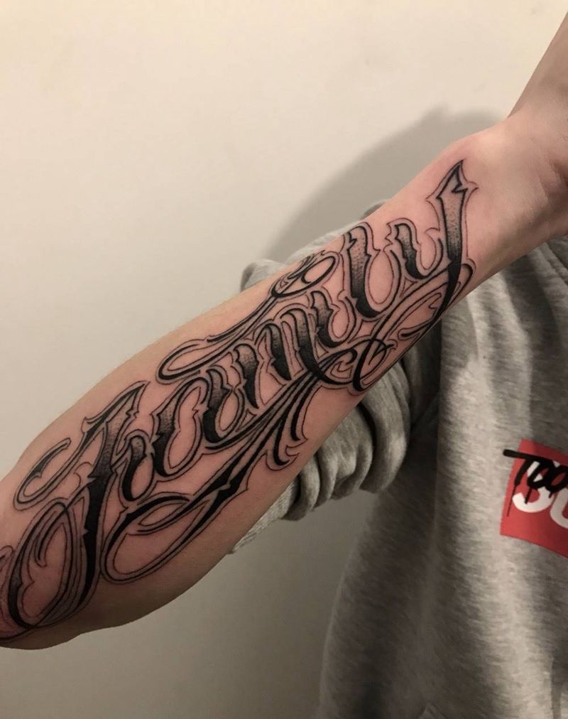 卡奇诺花写纹身图片_手臂花体字纹身图案