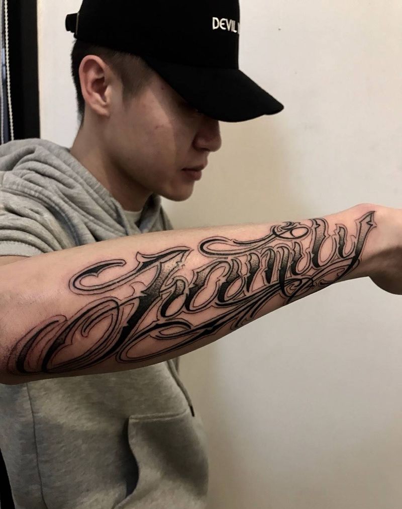 卡奇诺花写纹身图片_手臂花体字纹身图案