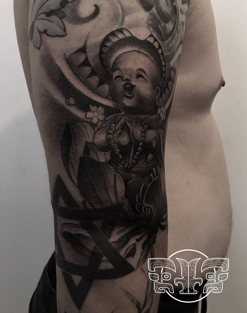 当前位置: 首页 >山西省阳泉市纹身店-问鼎刺客纹身纹身图案>小和尚纹身图片_手臂新传统纹身图案