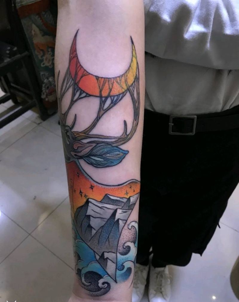 当前位置: 首页 >山西省阳泉市纹身店-问鼎刺客纹身纹身图案>鹿纹身图片_手臂New School纹身图案