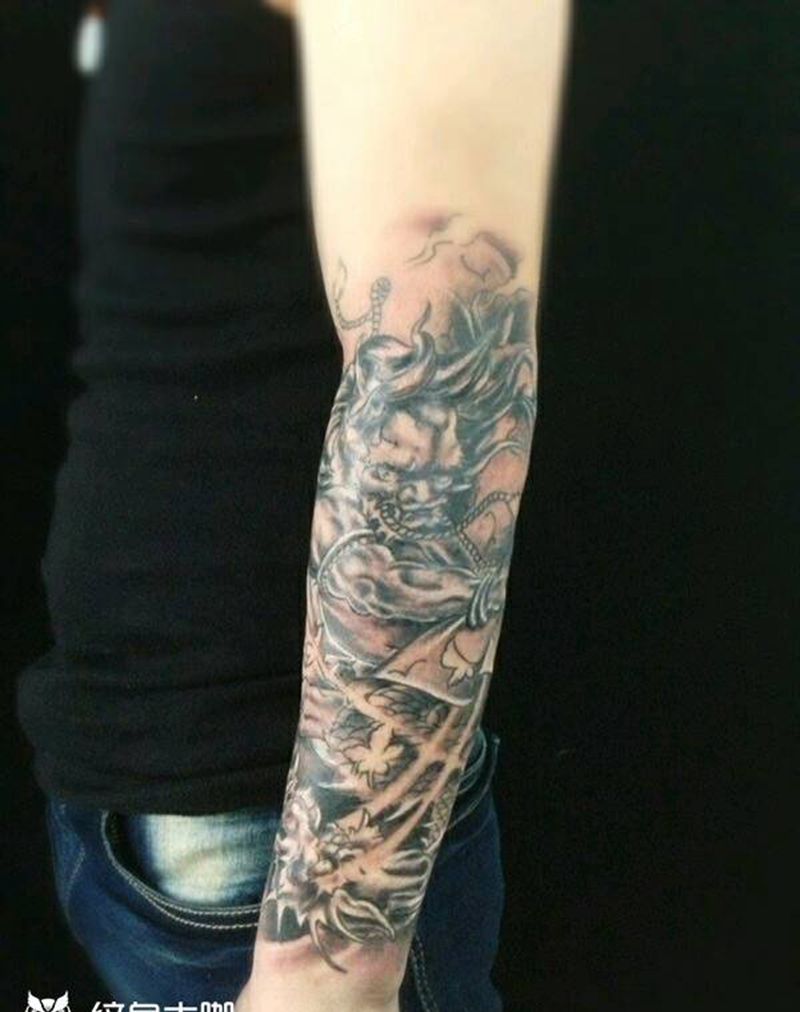 风神纹身图片_手臂传统鬼神成品纹身图案