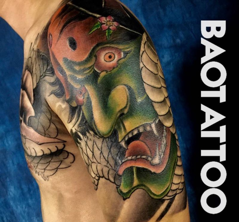 当前位置: 首页 >山西省太原市纹身店-灵药刺青TATTOO纹身图案>般若纹身图片_手臂新传统纹身图案