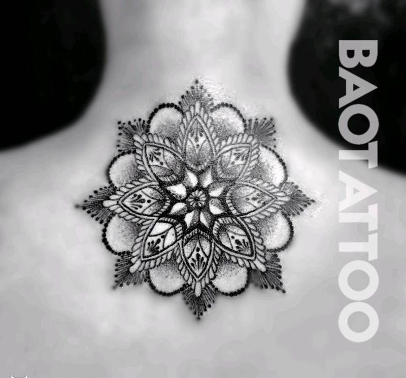 当前位置: 首页 >山西省太原市纹身店-灵药刺青TATTOO纹身图案>曼陀罗纹身图片_颈部成品纹身图案