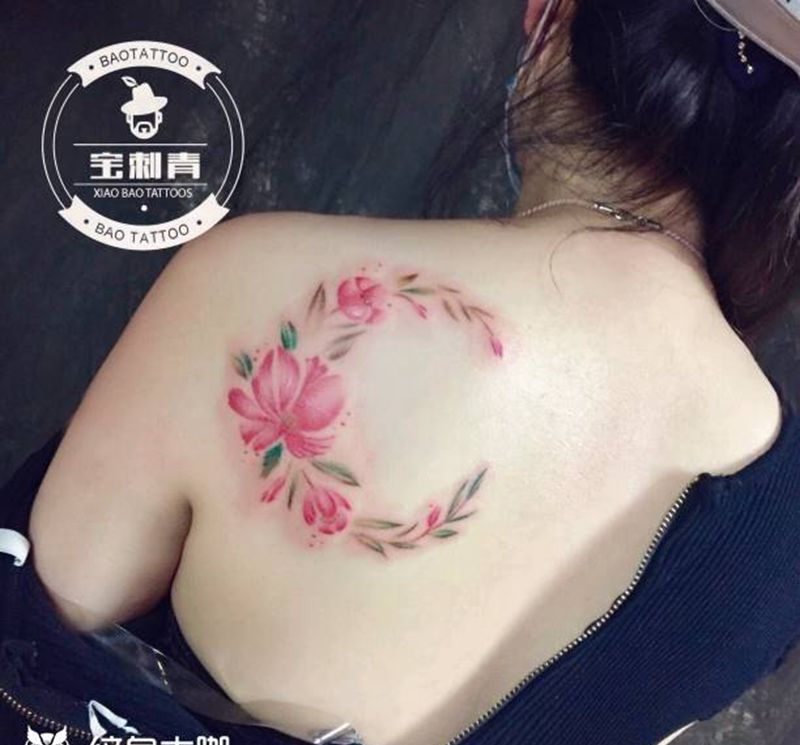 当前位置: 首页 >山西省太原市纹身店-灵药刺青TATTOO纹身图案>后肩花纹身图片_背部清新成品纹身图案