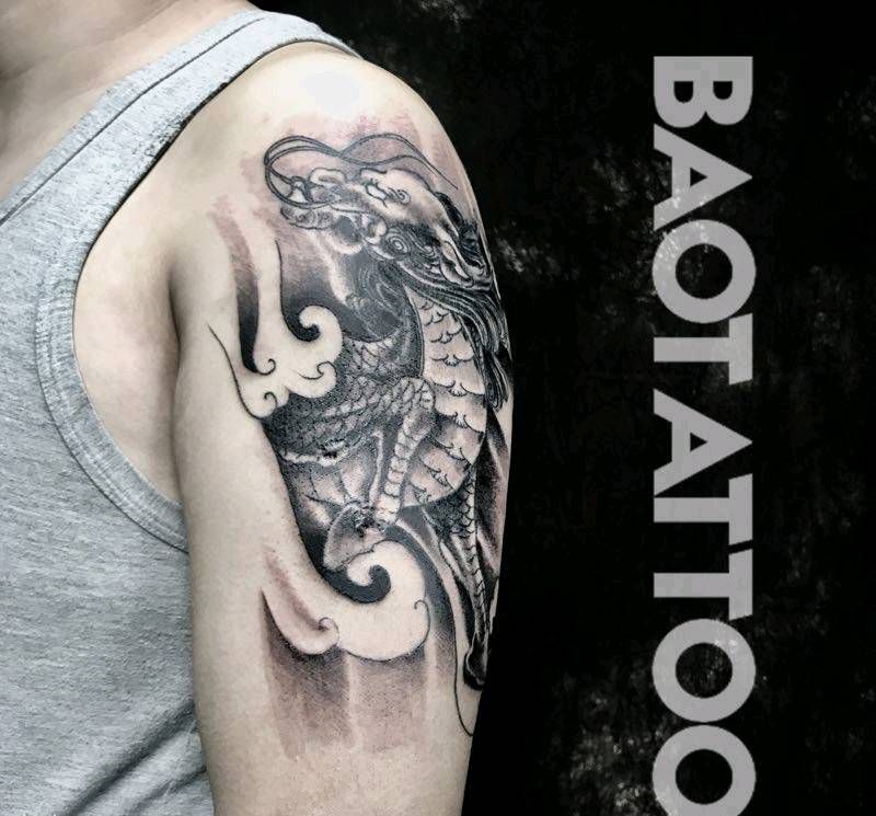 • T网红王老大花腿龙纹身图片_腿部新传统纹身图案