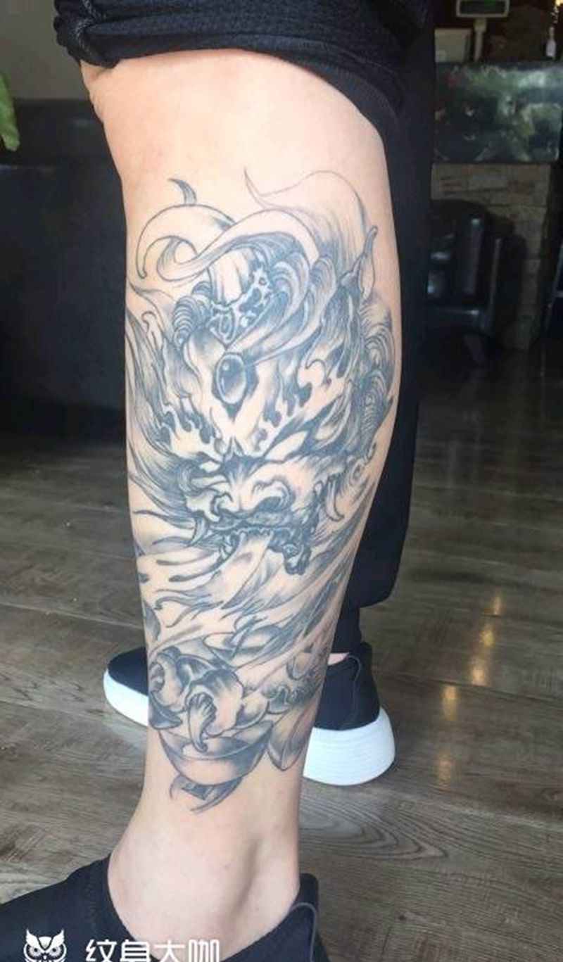 • T网红王老大花腿龙纹身图片_腿部新传统纹身图案