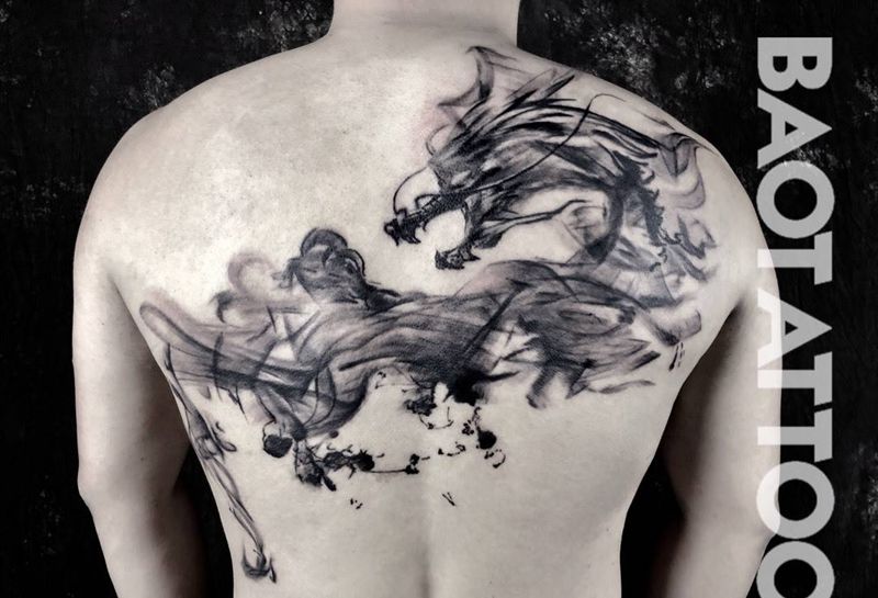 当前位置: 首页 >山西省太原市纹身店-灵药刺青TATTOO纹身图案>龙纹身图片_背部水墨纹身图案
