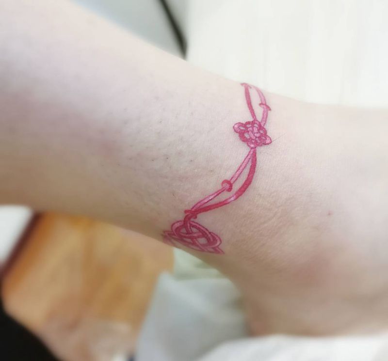 国风绳结纹身图片_脚部腿部水彩New School蝴蝶结脚环小清新纹身纹身图案