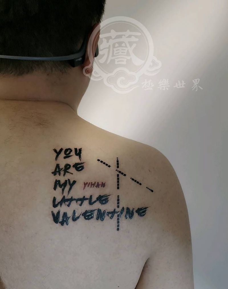 当前位置: 首页 >山西省太原市纹身店-西藏极乐世界纹身工作室太原部纹身图案>父爱纹身图片_肩部背部花体字几何摩斯密码原创设计英文纹身图案