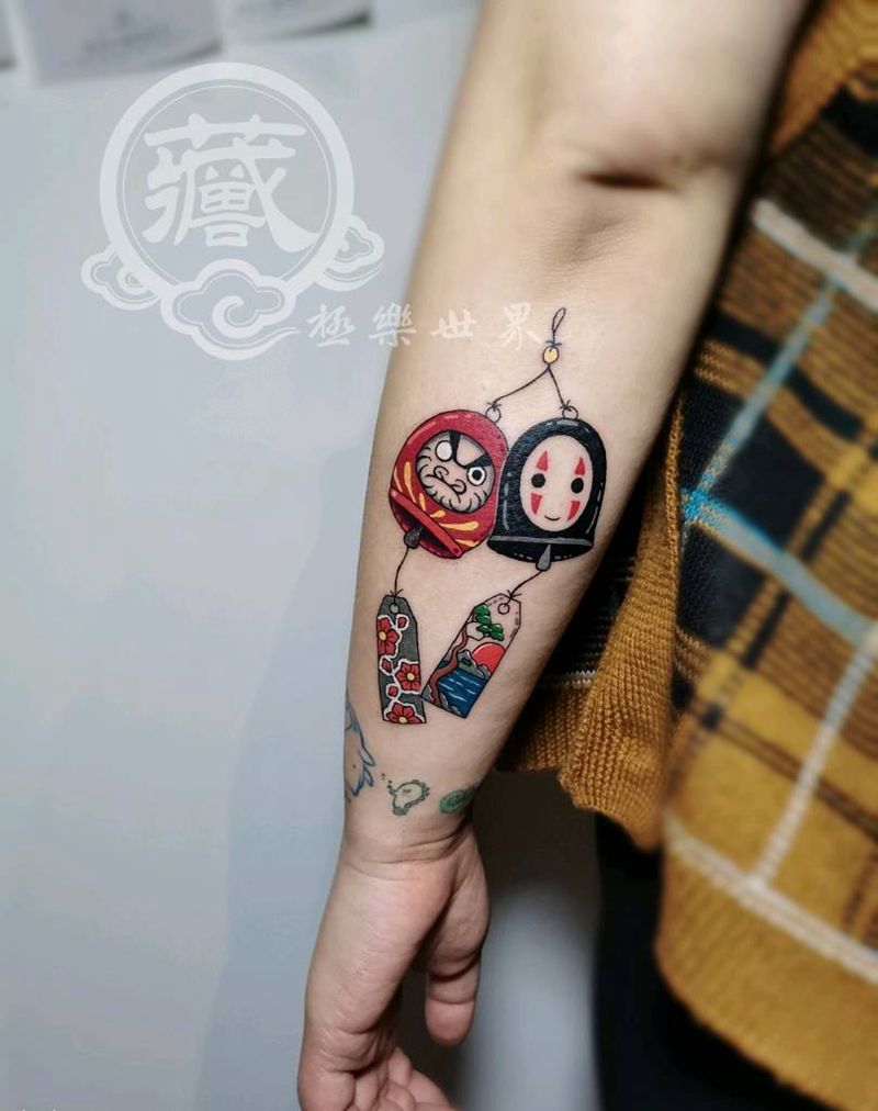福运纹身图片_手臂手部新传统水彩达摩蛋无脸男日式纹身图案