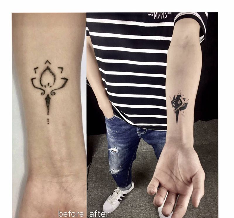遮盖纹身图片_手臂手部图腾几何莲花遮盖旧纹身修改纹身图案