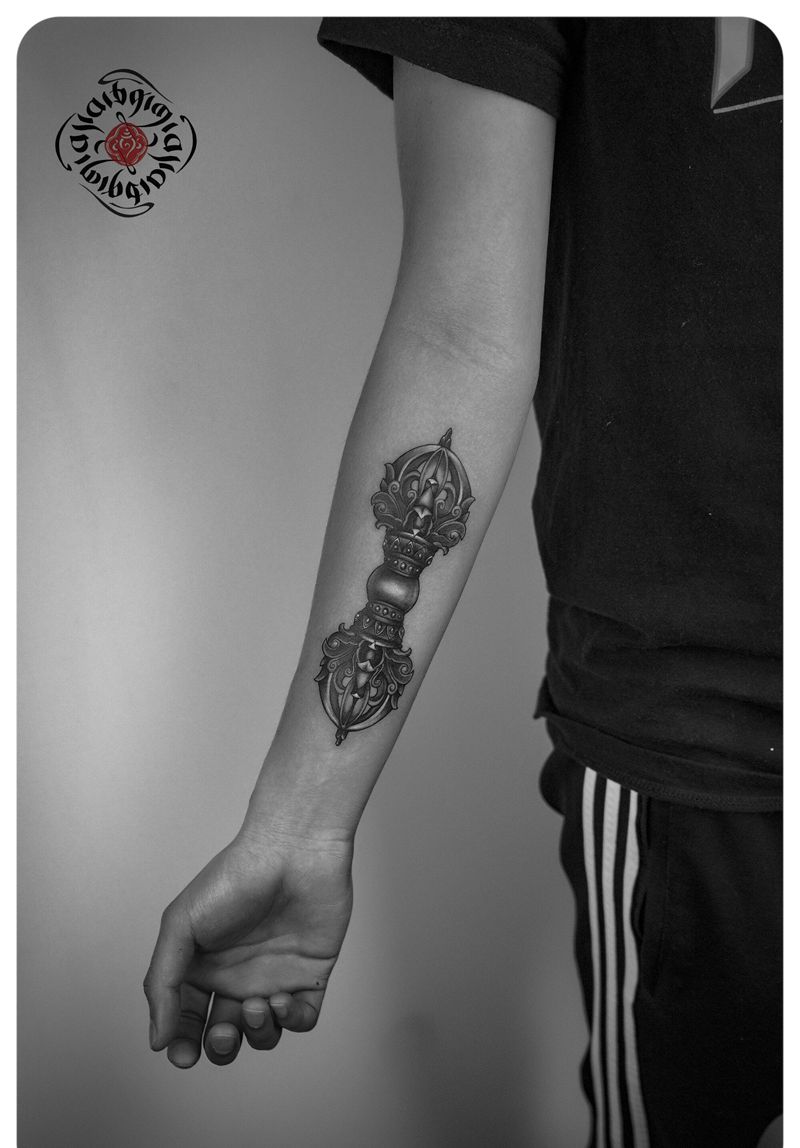 金刚杵纹身图片_手臂手部欧美写实New School金刚杵佛西藏元素纹身图案