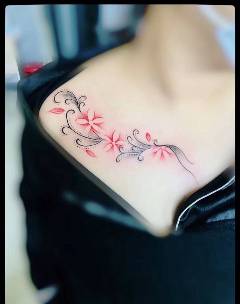 • 女性大花胸纹身_43张霸气漂亮的女性大花胸纹身图案作品