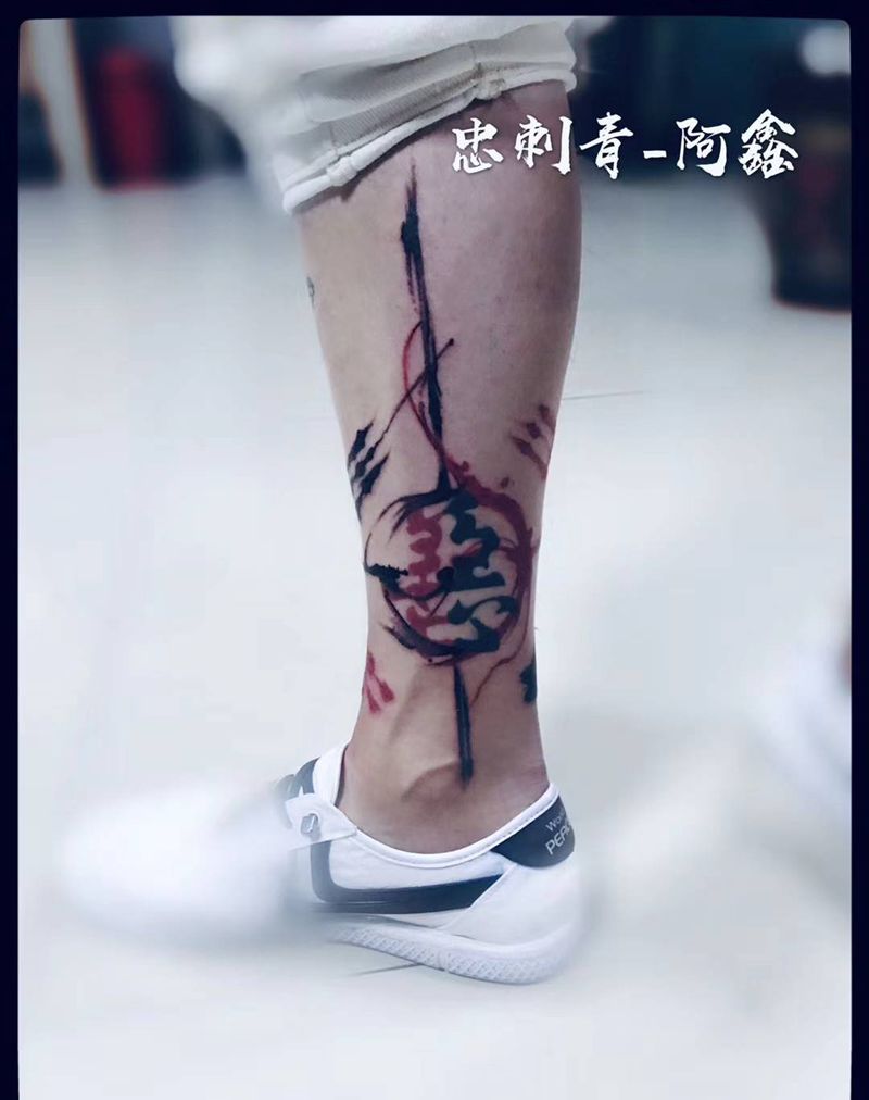 • T包小腿吹火男+阿多福纹身图片_腿部老传统新传统吹火男阿