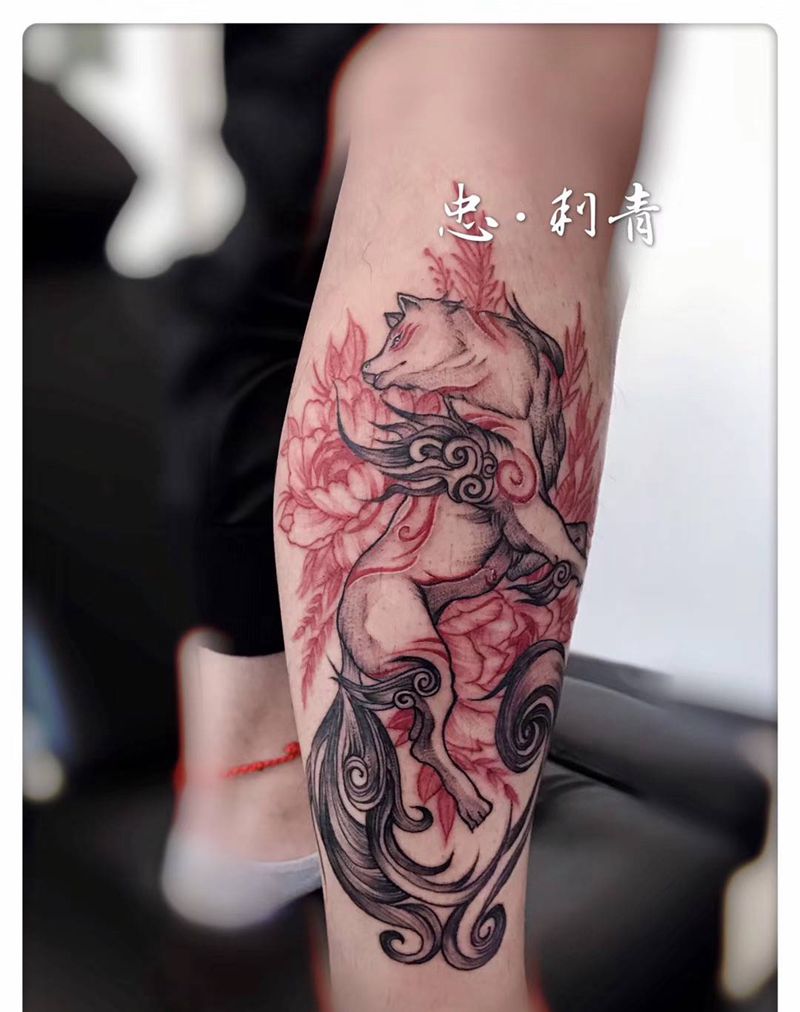 • T网红王老大花腿龙纹身图片_腿部新传统纹身图案