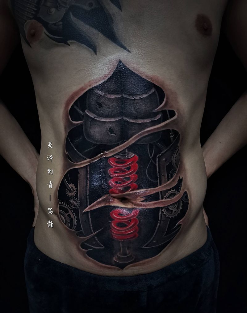 当前位置: 首页 >山西省大同市纹身店-灵泽刺青纹身图案>机械疤痕遮盖纹身图片_腹部欧美写实机械弹簧盔甲纹身图案