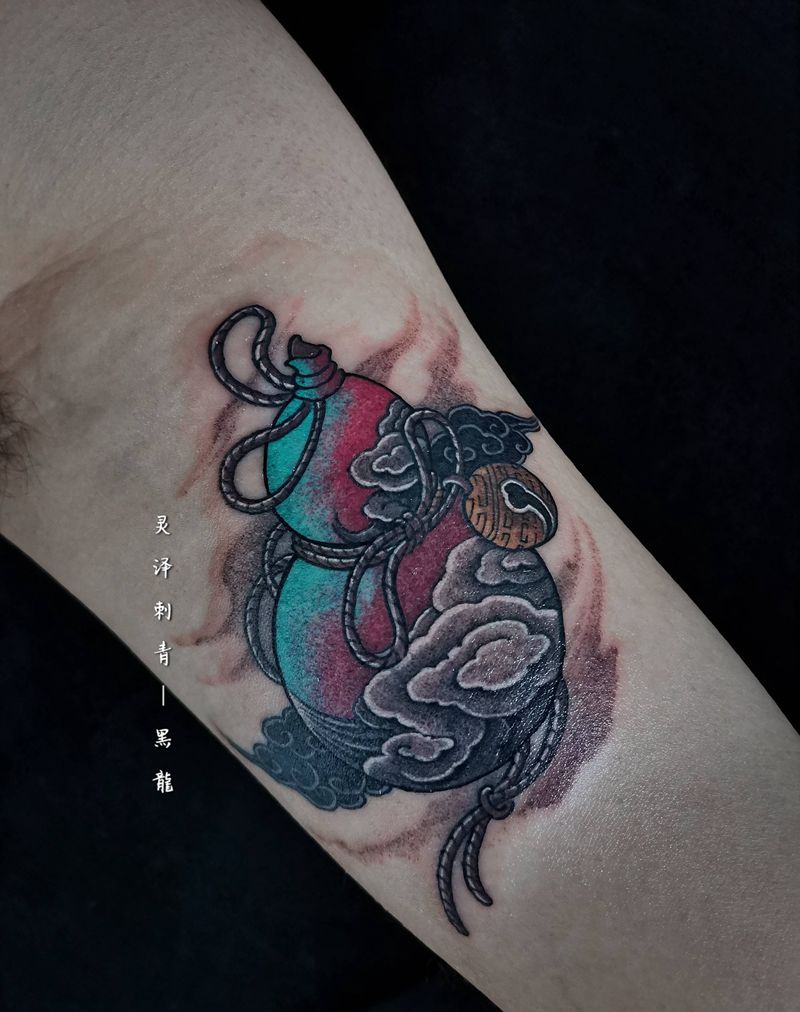 当前位置: 首页 >山西省大同市纹身店-灵泽刺青纹身图案>原创祥云小葫芦纹身图片_手臂新传统葫芦祥云纹身图案