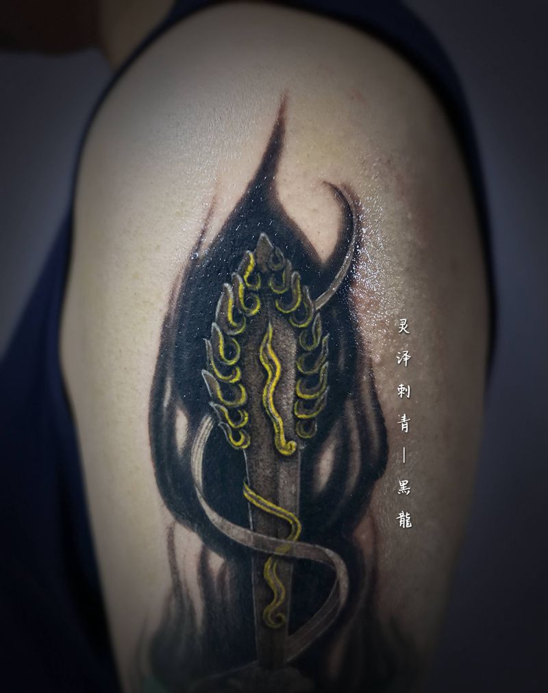 当前位置: 首页 >山西省大同市纹身店-灵泽刺青纹身图案>原创《文殊剑》纹身图片_手臂欧美写实剑文殊荷花纹身图案