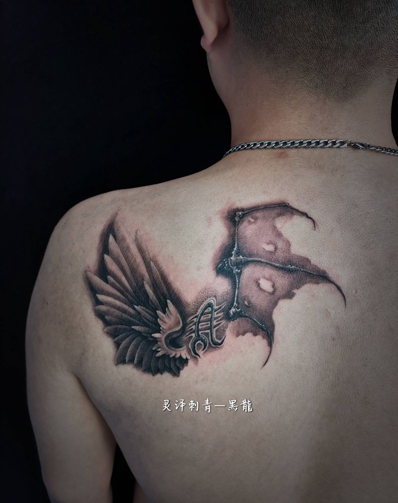 当前位置: 首页 >山西省大同市纹身店-灵泽刺青纹身图案>原创写实天使恶魔翅膀纹身图片_肩部背部欧美写实翅膀天使恶魔星座纹身图案