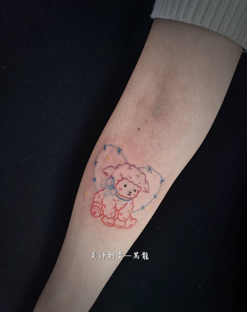 两小只纹身图片_手臂胸部点刺羊月亮纹身图案