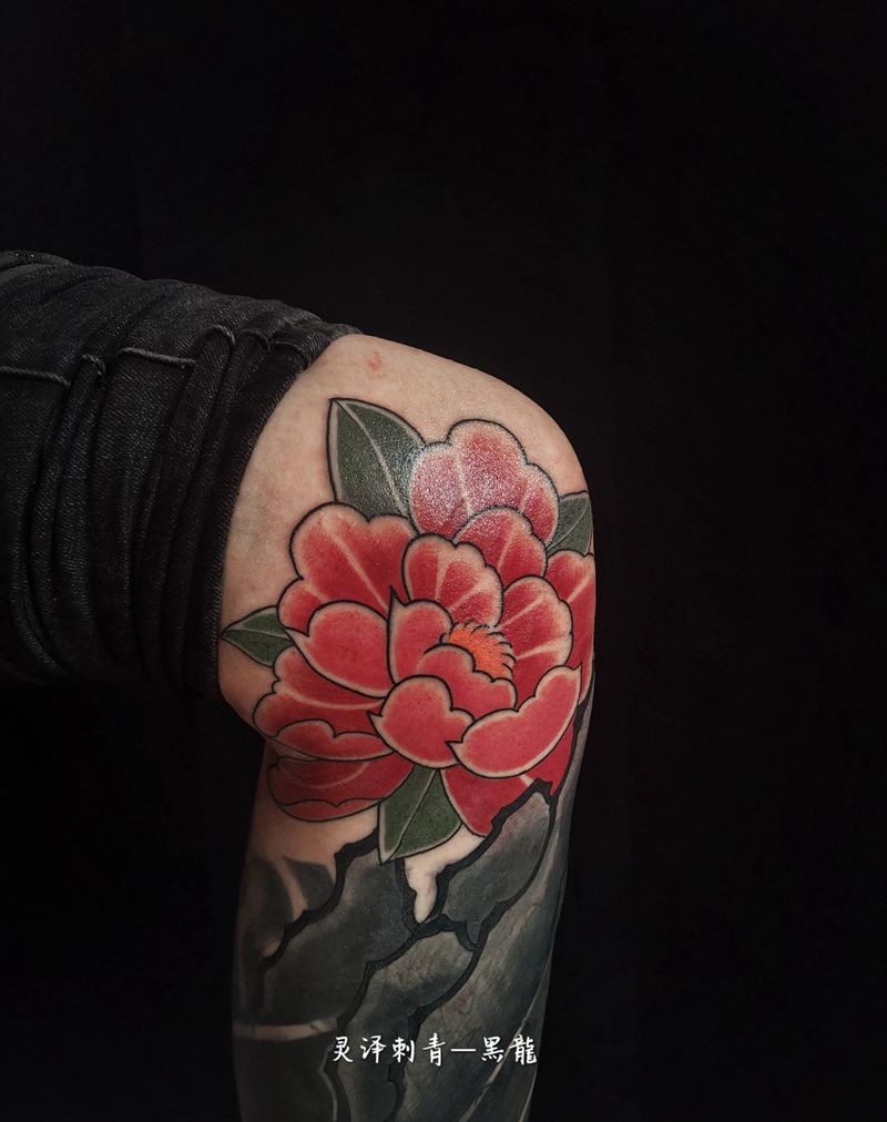日式牡丹纹身图片_腿部老传统牡丹纹身图案