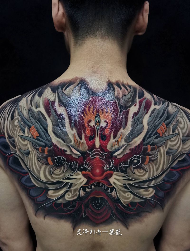 黑灰满背纹身图案