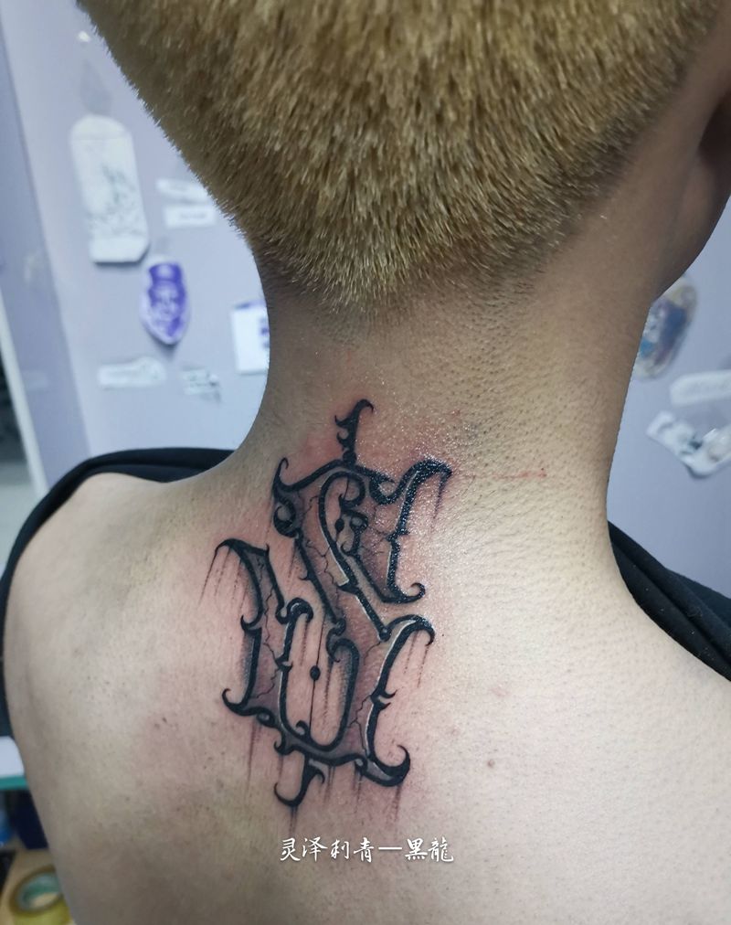 当前位置: 首页 >山西省大同市纹身店-灵泽刺青纹身图案>花体字纹身图片_背部颈部花体字暗黑花体字哥特纹身图案