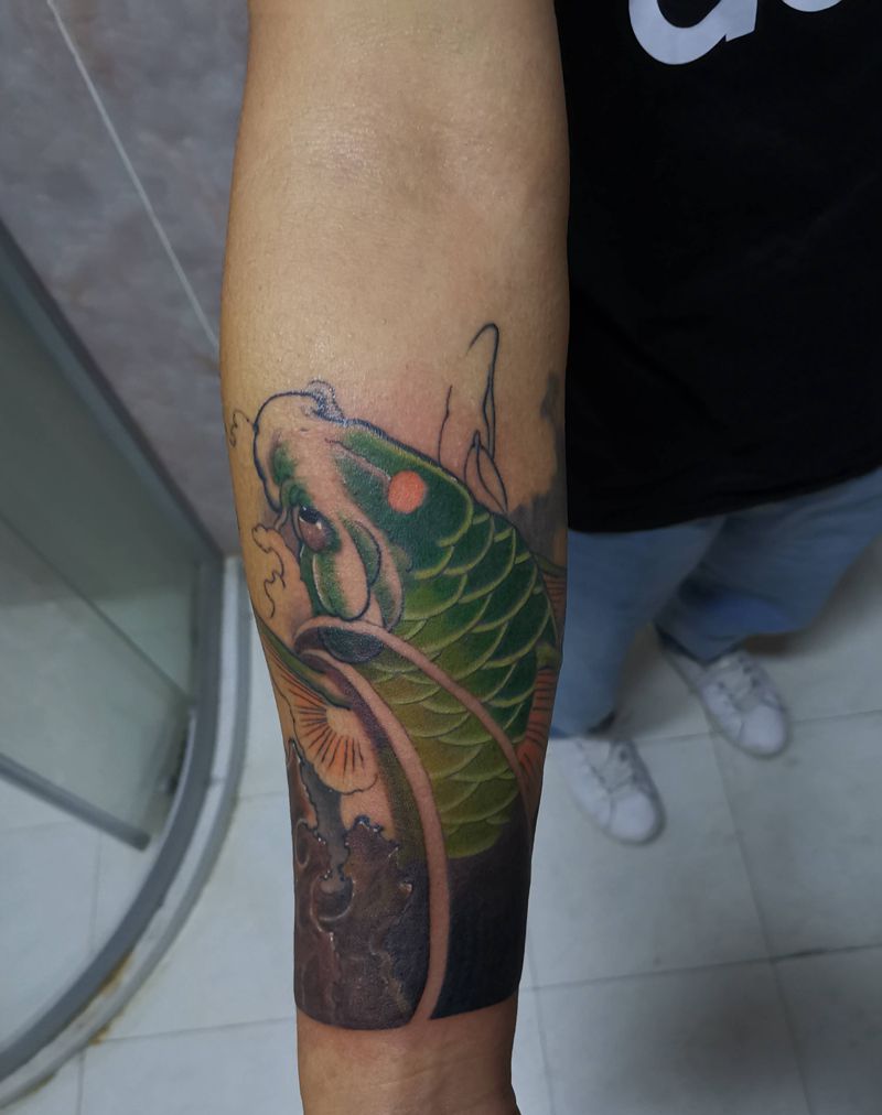 当前位置: 首页 >山西省大同市纹身店-灵泽刺青纹身图案>新传统鲤鱼纹身图片_手臂新传统鱼纹身图案