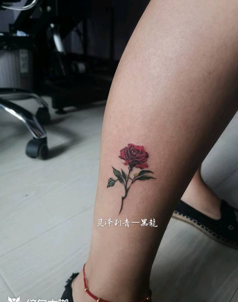 彩色小图纹身图片_腿部欧美写实花玫瑰纹身图案