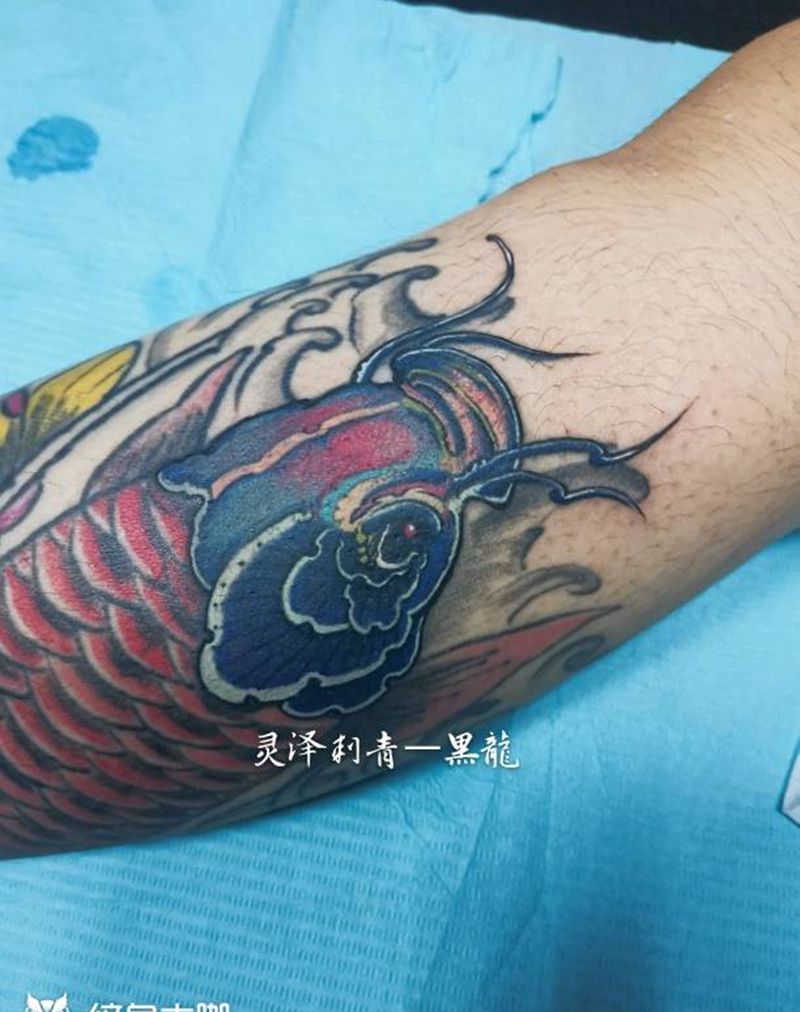 修改世纪大毁皮纹身图片_腿部新传统鱼浪花纹身图案