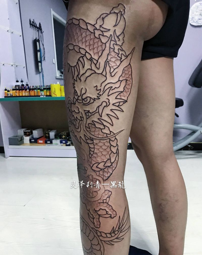 当前位置: 首页 >山西省大同市纹身店-灵泽刺青纹身图案>老传统花腿龙割线纹身图片_腿部老传统龙花纹身图案