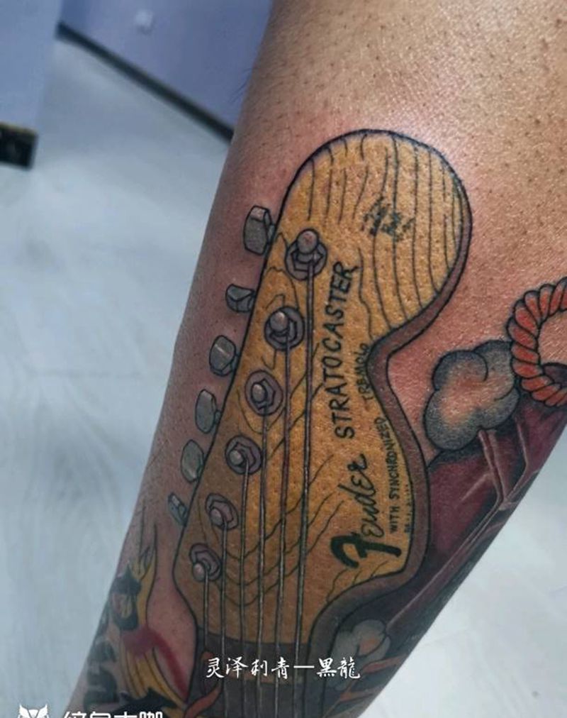 当前位置: 首页 >山西省大同市纹身店-灵泽刺青纹身图案>new school琴头酒瓶纹身图片_腿部New School琴头酒瓶花体字纹身图案