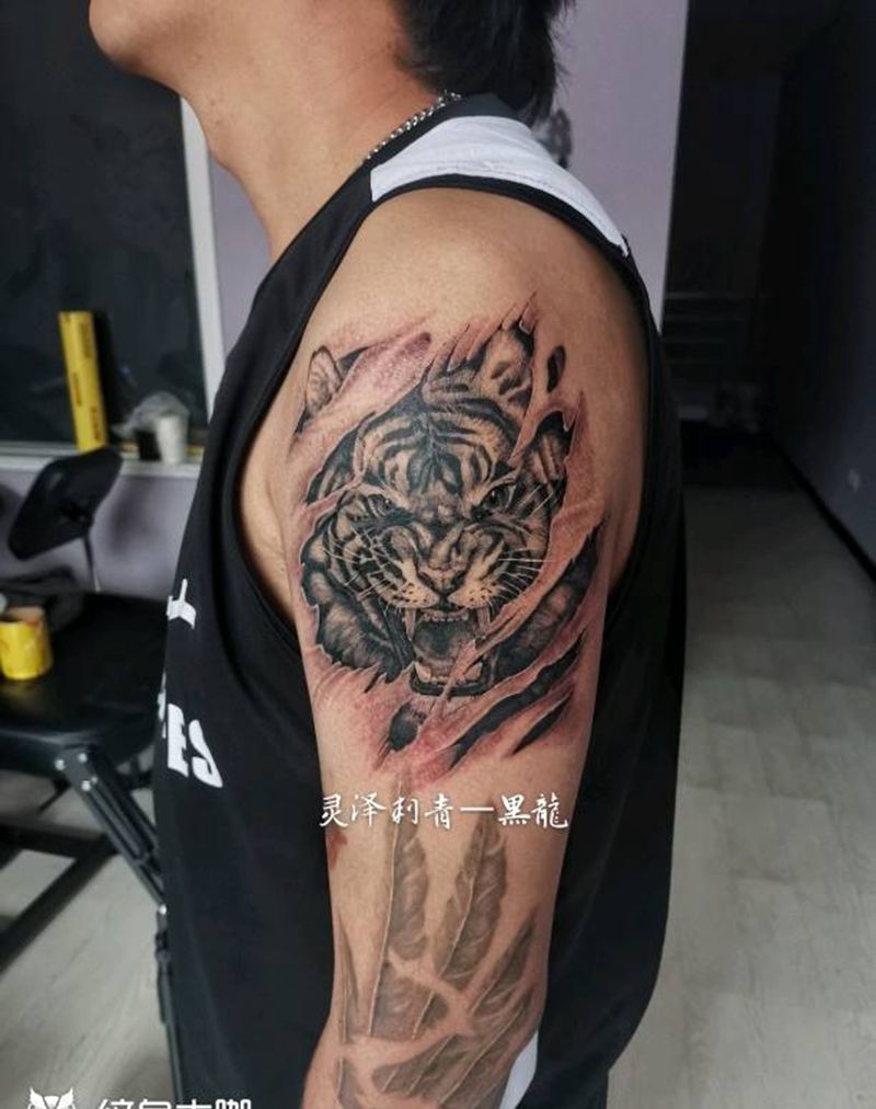 当前位置: 首页 >山西省大同市纹身店-灵泽刺青纹身图案>写实老虎纹身图片_肩部臀部欧美写实老虎纹身图案