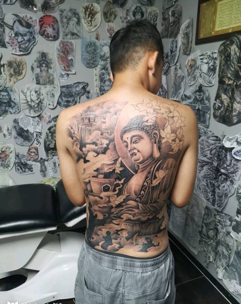 释迦牟尼佛纹身图片_背部纹身图案