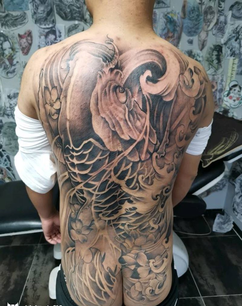 当前位置: 首页 >山西省大同市纹身店-大同纹身吧纹身图案>满背鲤鱼纹身图片_背部纹身图案