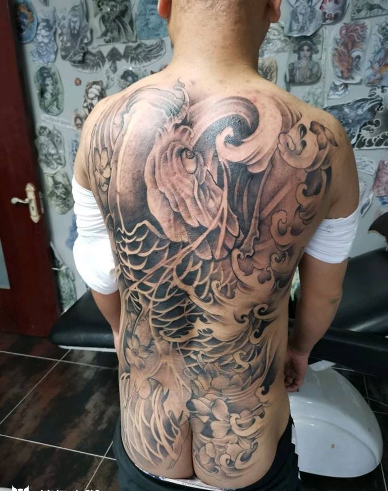 当前位置: 首页 >山西省大同市纹身店-大同纹身吧纹身图案>满背鲤鱼纹身图片_背部纹身图案