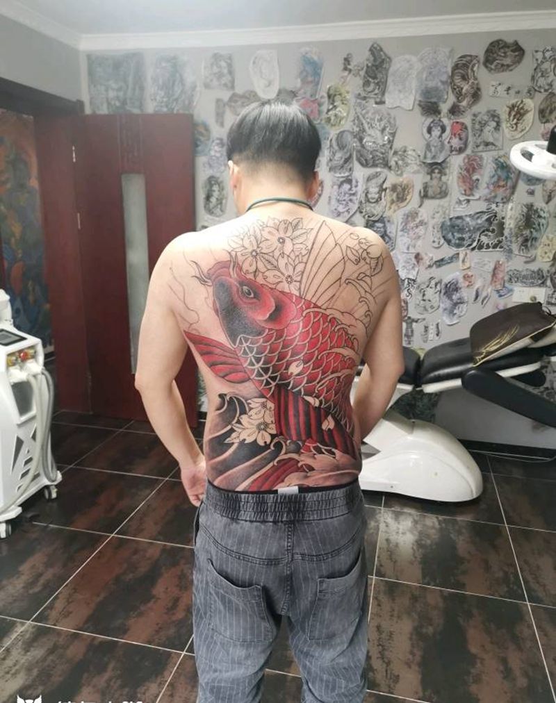 当前位置: 首页 >山西省大同市纹身店-大同纹身吧纹身图案>满背彩色鲤鱼纹身图片_背部纹身图案