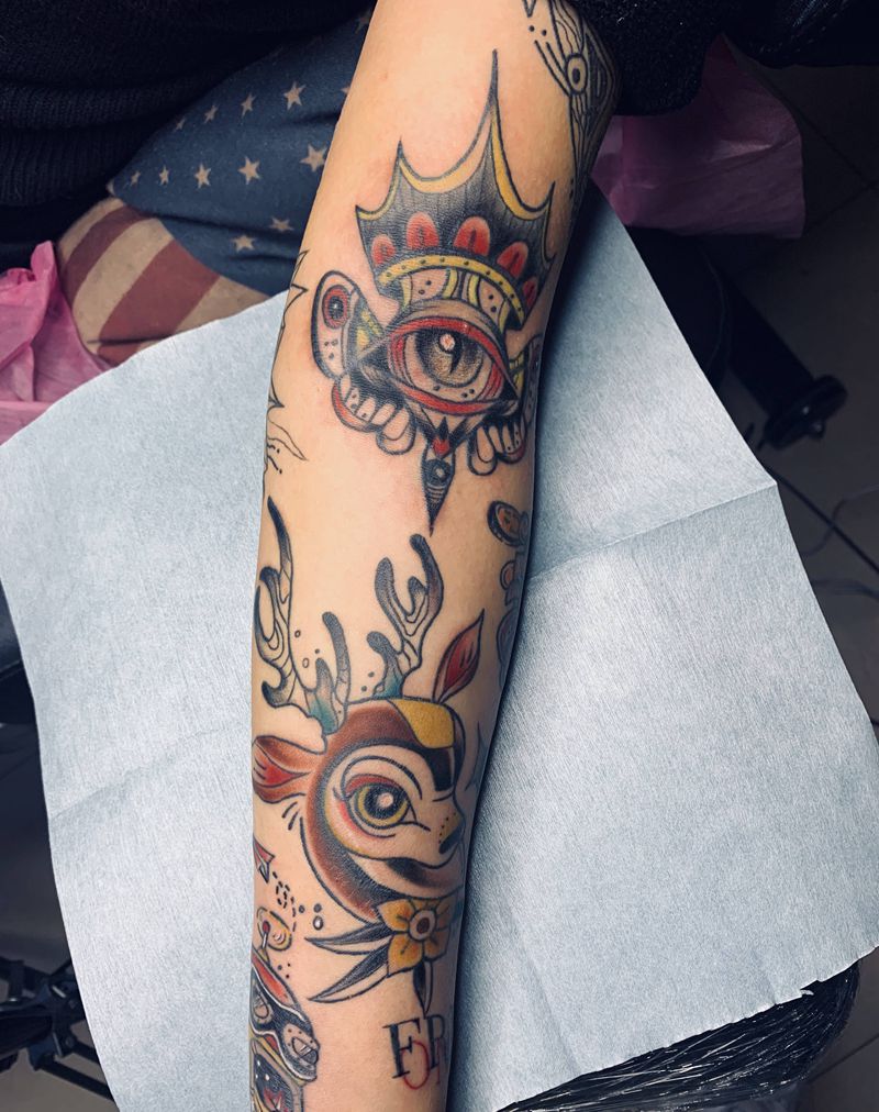 当前位置: 首页 >山西省太原市纹身店-SKY刺青工作室纹身图案>拼接花臂纹身图片_Old School纹身图案