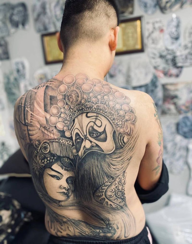 霸王别姬纹身图片_背部新传统人物纹身图案