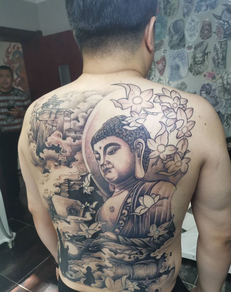 释迦牟尼佛纹身图片_背部新传统纹身图案