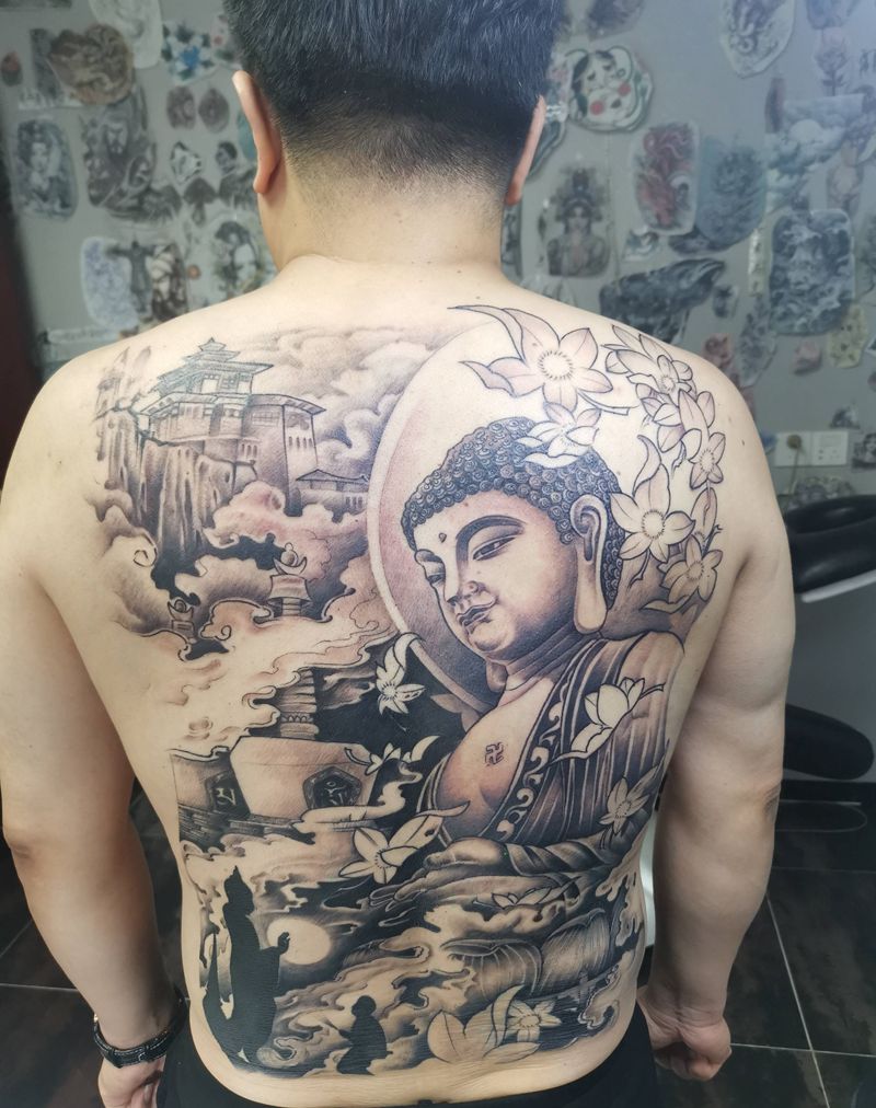 释迦牟尼佛纹身图片_背部新传统纹身图案